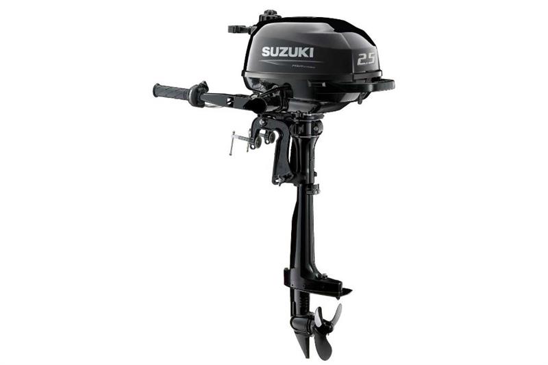 Le hors-bord portable Suzuki DF2.5 est le plus petit Suzuki 4 temps à ce jour. Pesant à peine 30 livres, le DF2.5 est le moteur Suzuki à 4 temps le plus léger jamais construit. Suzuki est également fière de souligner que le DF2.5 répond aux normes rigoureuses d’émissions de l’EPA 2010 et aux normes de la cote 3 étoiles du CARB pour les émissions ultra faibles. Un moteur monocylindre à soupape en tête 4 temps de 2,5 ch, d’une cylindrée de 4,15 po cu, génère beaucoup de puissance pour les petits bateaux d’assistance et les bateaux pneumatiques. Il est doté d’un système de recul facile à tirer qui commence par l’allumage électronique sans pointe de Suzuki. Aucune batterie n’est nécessaire pour ce système remarquablement simple et fiable.
