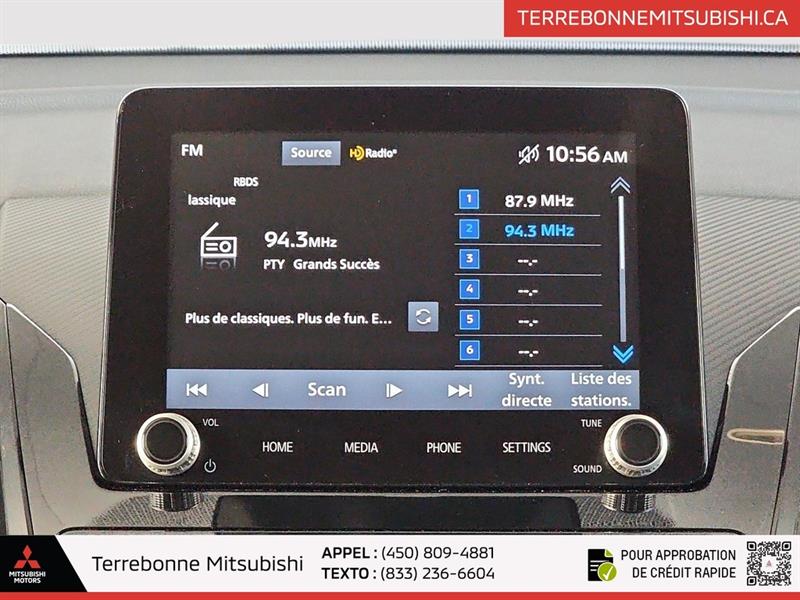 AUCUN ACCIDENT SIÈGES CHAUFFANTS ATTÉNUATION DE COLLISION AVANT RÉGULATEUR DE VITESSE MAGS 18 POUCES ANDROID AUTO ET APPLE CARPLAY CLIMATISATION AUTOMATIQUE 2 ZONES BLUETOOTH COMMANDE AUDIO AU VOLANT CAMÉRA DE RECULE ESSUI-GLACE AUTOMATIQUE PHARES AUTOMATIQUES ET BIEN PLUS ENCORE !!! Certification disponible sur presque tous nos véhicules : Inspection en 160 points, rapport Carfax fournis pour vous, lavage complet et bien plus! !! Venez nous rencontrer pour tous les détails en concession !!! TERREBONNE MITSUBISHI vous offre un vaste choix de véhicules d'occasion à prix plus que compétitif. Que ce soit pour un véhicule utilitaire sport (VUS), une mini-fourgonette, un camion, un convertible (décapotable), une berline, une voiture sport, un coupé 2 portes, un pick-up ou tout autre véhicule, si nous ne lavons pas en inventaire, nous le trouverons pour vous et ce au meilleur prix du marché !!! Tous nos véhicules sont inspectés et reconditionnés par des techniciens professionnels et certifiés. Venez consulter VOTRE spécialiste du financement sur place. NOTRE MISSION : Vous offrir un service à la hauteur de vos attentes ! NOUS POUVONS AUSSI AVOIR POUR VOUS UN ECLIPSE CROSS SE,SEL, GT -Inspection complète fourni -Financement sur place -1ere, 2iem, 3iem chance au crédit -Rapport CARFAX disponible -Prolongation de garantie disponible Situé à quelques minutes de : Beloeil, Longueuil, de Chambly à St-Bruno, St-Basile, Marieville, De Richelieu à St-Mathias, De Mont-St-Hilaire à Carignan, Montréal, Repentigny, Charlemagne, Boucherville, Saint-Lambert, Chambly, Rive-Nord, Laval, Mascouche, Terrebonne, Rive-Sud. ---------------------------------------------------------------------------------------------------------------------------------------------------------------------------------------------------------------------------------------------------------------------------------------------------------------- HEATED SEATS, FORWARD COLLISION MITIGATION, CRUISE CONTROL, 18-INCH WHEELS, ANDROID AUTO AND APPLE CARPLAY, DUAL-ZONE AUTOMATIC CLIMATE CONTROL, BLUETOOTH, STEERING WHEEL AUDIO CONTROL, REARVIEW CAMERA, AUTOMATIC WIPERS, AUTOMATIC HEADLIGHTS, AND MUCH MORE!!! Certification available on almost all our vehicles: 160-point inspection, Carfax report provided for you, complete vehicle reconditioning, complete wash, and much more! Come meet us at the dealership for all the details! TERREBONNE MITSUBISHI offers a wide selection of used vehicles at more than competitive prices. Whether it's a sport utility vehicle (SUV), a minivan, a truck, a convertible (drop-top), a sedan, a sports car, a 2-door coupe, a pickup truck or any other vehicle, if we don't have it in stock, we will find it for you at the best price on the market!!! All our vehicles are inspected and reconditioned by professional and certified technicians. Come and consult YOUR financing specialist on site. OUR MISSION: To offer you a service that meets your expectations! We also have an ECLIPSE CROSS SE, SEL, or GT for you. - Complete inspection provided - On-site financing - First, second, and third chance credit - CARFAX report available - Extended warranty available